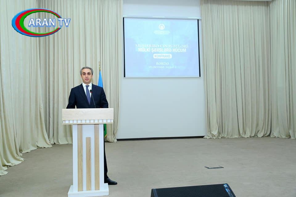 Ermənistanın Vətən müharibəsi zamanı Bərdə şəhərində törətdiyi terror hadisələrinin ildönümü ilə bağlı Qeyri-Hökumət Təşkilatlarına (QHT) Dövlət Dəstəyi Agentliyinin keçirdiyi “Müharibə cinayətləri: Mülki şəxslərə hücum” adlı konfransın iştirakçıları bəyanat yayıb. ARANTV.AZ xəbər verir ki, bəyanatda deyilir: Müzəffər Ali Baş Komandanın rəhbərliyi ilə ordumuz işğalçı Ermənistan ordusunun təxribatının qarşısının alınması və əks-hücum əməliyyatları ilə 30 ildən sonra torpaqlarımızı işğaldan azad etdi və Ermənistan ordusu döyüş meydanında darmadağın edildi. 44 günlük Vətən müharibəsi ərzində Ermənistan döyüş meydanında yaşadığı məğlubiyyətin əvəzini hər zaman olduğu kimi mülki əhalidən çıxmağa və əhali arasında qorxu yaratmağa…