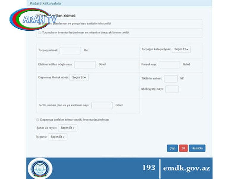 ARANTV.AZ xəbər verir ki, Komitədən trend-ə verilən məlumata görə, bu elektron xidmət sayəsində “Kadastr planlarının və yerquruluşu xəritələrinin tərtibi”, eləcə də “Torpaqların inventarlaşdırılması və müayinə baxış aktlarının tərtibi” ilə bağlı tələb olunan xidmət haqqını və dövlət rüsumunu öyrənmək mümkündür. Bu isə öz növbəsində daşınmaz əmlakın kadastrı sahəsində göstərilən xidmətlərin daha da sadələşməsi deməkdir. Vətəndaşlar sənədləşdirmə üçün zəruri rüsum və xidmət haqqını öncədən öyrənməklə vaxtlarına qənaət edəcək. Xidmət bu sahədə şəffaflığın, çevikliyin artırılmasına, vətəndaş məmnunluğunun təmin edilməsinə imkan verir. Xidmət haqqının və dövlət rüsumunun əvvəlcədən dəqiq bilinməsi istifadəçilərin özləri üçün ən optimal variantı seçməsini və sənədləşdirməyə başlayıb-başlamamaqla bağlı istədiyi qərarı verməsini təmin edir. Bu yenilik vətəndaşa rahat və operativ qaydada kadastrla bağlı hüquqi əməliyyatları aparmaq üçün daha rasional imkanlar yaradır.