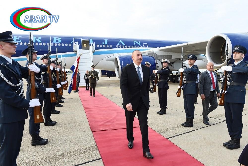 Hər iki ölkənin dövlət bayraqlarının dalğalandığı Zaqreb şəhərinin “Franyo Tucman” aeroportunda dövlətimizin başçısının şərəfinə fəxri qarovul dəstəsi düzülmüşdü.