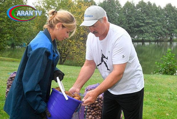 Belarus lideri Aleksandr Lukaşenko öz tarlasında kartof və qarpız yığıb.