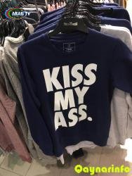 Bakıda “New Yorker” geyim mağazalarında “Kiss my ass.” yazılı köynəklər satılır.
