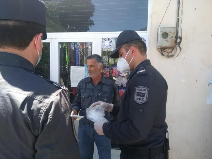 Daxili İşlər Nazirliyinin mətbuat xidmətindən verilən məlumata görə, yerli idarələrin və bankların önündə yarana biləcək sıxlığı nəzərə alaraq polis əməkdaşları bu ərazilərə xüsusi olaraq nəzarət edirlər. Vətəndaşlardan tibbi maskadan istifadə etmək, insanlarla təmas zamanı iki metrlik ara məsafəsini saxlamaq tövsiyə olunub. Həmçinin dayanacaqlarda, marşrut avtobuslarında maska taxmadan əyləşən sərnişinlərə, eləcə də piyada hərəkət edən sakinlərə tibbi maska təqdim olunub.