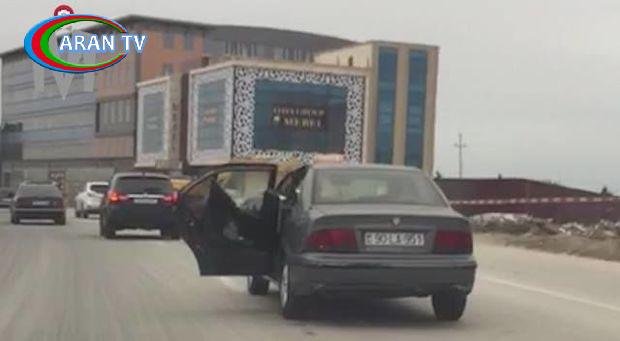 Kadrlardan aydın görünür ki, Babək prospekti ilə hərəkətdə olan sürücü avtomobili qapısı açıq vəziyyətdə idarə edib.