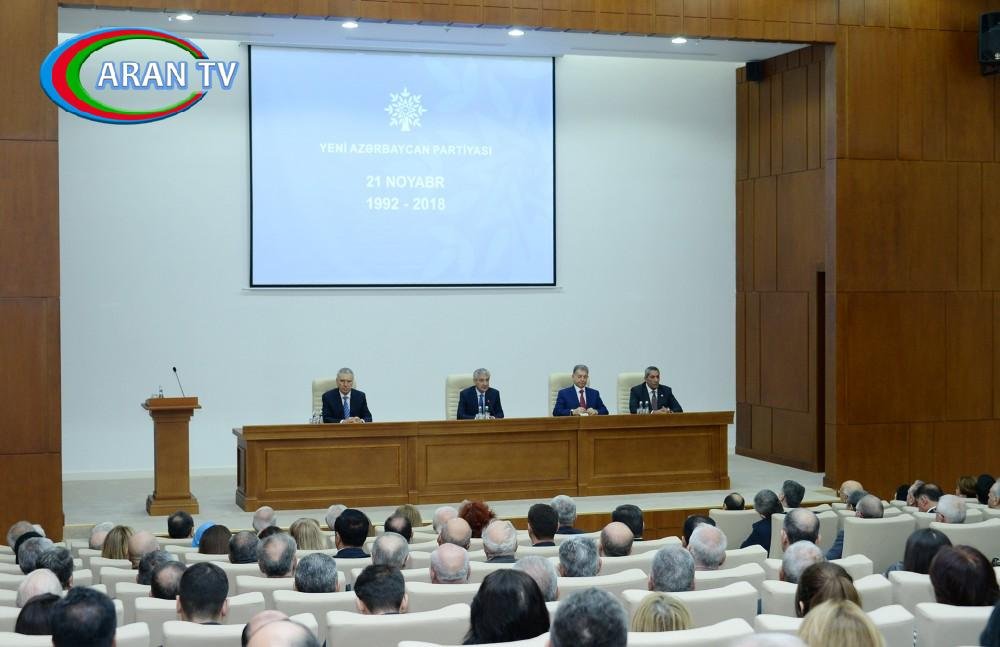 Tədbirdə çıxış edən Yeni Azərbaycan Partiyası sədrinin müavini-icra katibi, Baş nazirin müavini Əli Əhmədov bildirib ki, bu gün YAP Azərbaycanın siyasi ab-havasının indikatoru rolunda oynayır. O deyib ki, Yeni Azərbaycan Partiyasının yaranması Azərbaycanın müasir tarixinin ən önəmli hadisələrindən biridir. Bu siyasi təşkilat özünün 26 illik fəaliyyətindən məmnundur. Bu illər ərzində Azərbaycan regionda öz mövqeyini əhəmiyyətli dərəcədə artırıb.