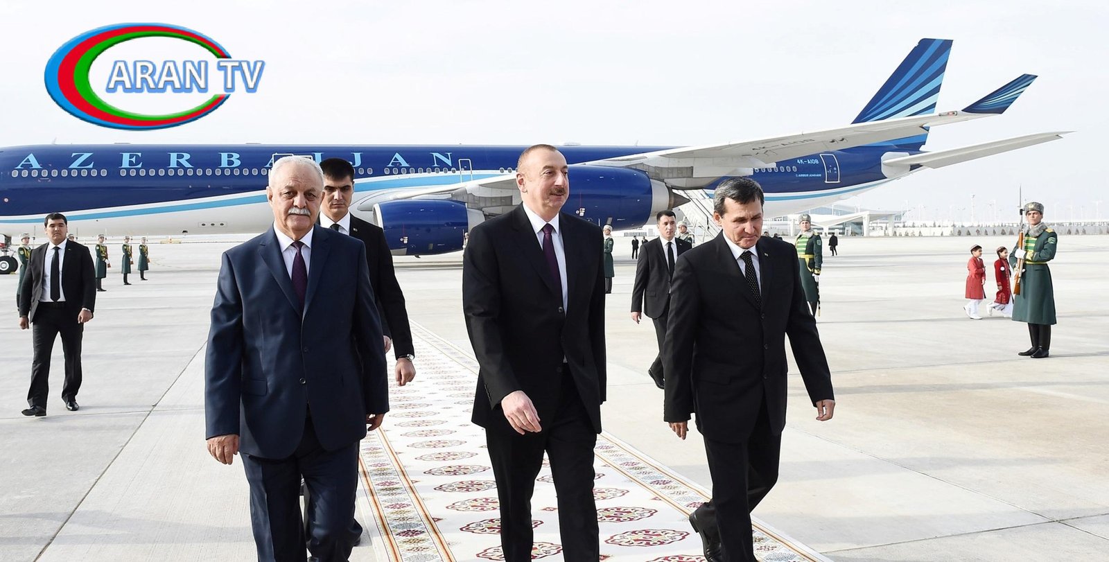 Azərbaycanın və Türkmənistanın dövlət bayraqlarının dalğalandığı Aşqabad beynəlxalq hava limanında dövlətimizin başçısının şərəfinə fəxri qarovul dəstəsi düzülmüşdü.