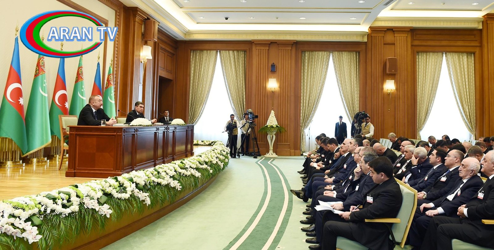 ARANTV.AZ xəbər verir ki, noyabrın 22-də sənədlərin imzalanması mərasimindən sonra Azərbaycan Respublikasının Prezidenti İlham Əliyev və Türkmənistan Prezidenti Qurbanqulu Berdiməhəmmədov mətbuata birgə bəyanatla çıxış ediblər.