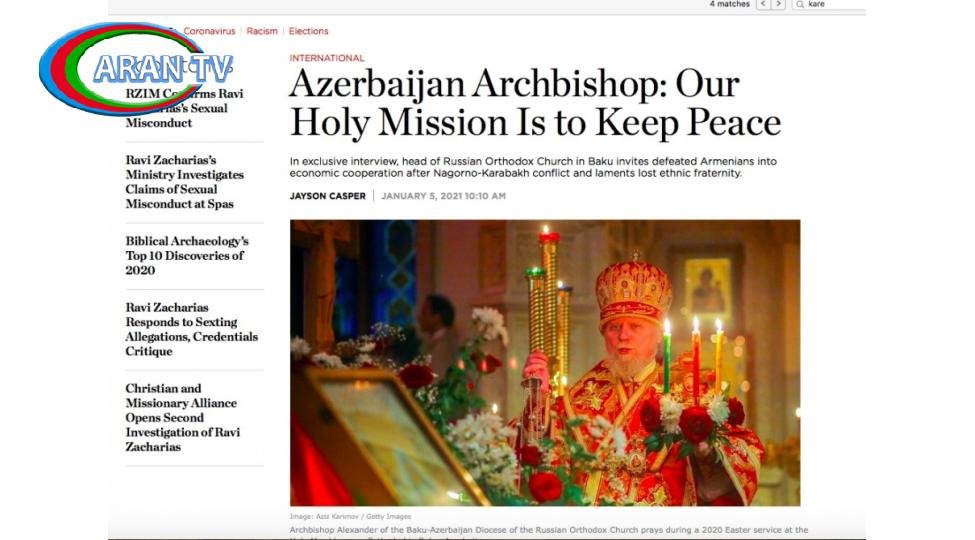 ARANTV.AZ AZƏRTAC-a istinadla xəbər verir ki, məqalədə Rus Pravoslav Kilsəsinin Bakı və Azərbaycan Yeparxiyasının rəhbəri arxiyepiskop Aleksandrın münaqişə barədə mövqeyi ifadə olunub və regionda davamlı sülhün bərqərar olması prosesinə kömək çağırışı səslənib.