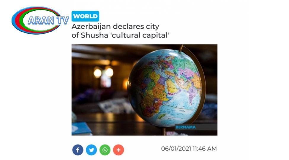 Malayziyanın BERNAMA Milli İnformasiya Agentliyi Şuşa şəhərinin Azərbaycan mədəniyyətinin paytaxtı elan olunmasına dair məqalə yayıb.