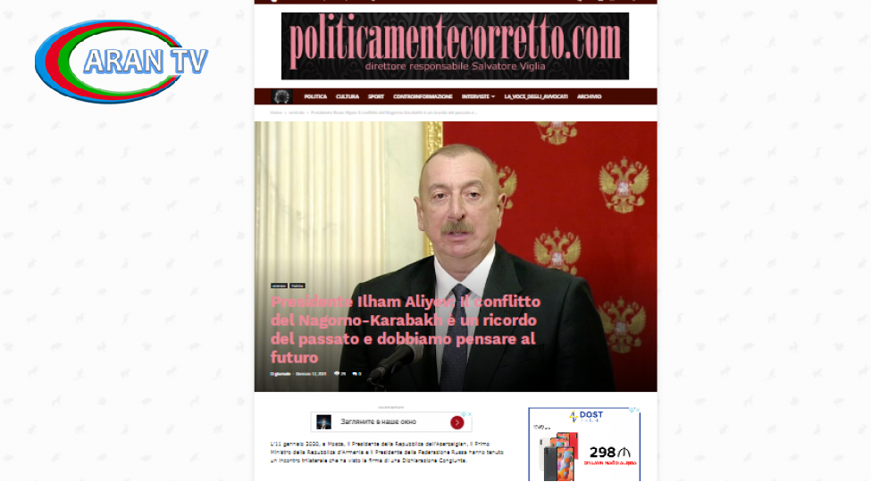 İtaliya mətbuatı: Prezident İlham Əliyev: Dağlıq Qarabağ münaqişəsi keçmişdə qalıb