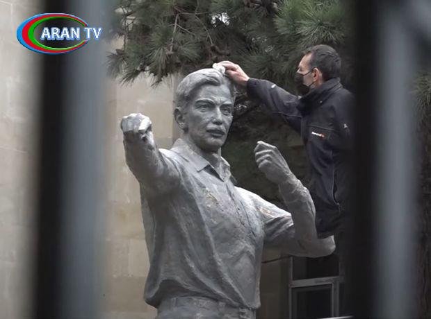 Tofiq Bəhramovun heykəli əvvəlki rənginə qaytarıldı – VİDEO