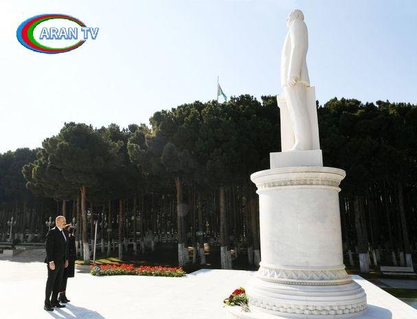 ==xəbər verir ki, dövlətimizin başçısı və birinci xanım əvvəlcə ulu öndər Heydər Əliyevin Xırdalan şəhərindəki abidəsini ziyarət edərək önünə gül dəstəsi qoydular.