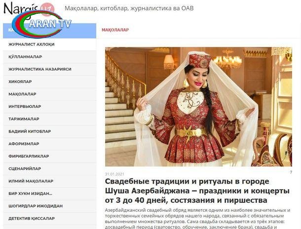 Özbəkistanın “nargis.uz” portalı qədim Şuşa şəhərinin toy ənənələri və mərasimləri haqqında rus dilində məqalə çap edib.