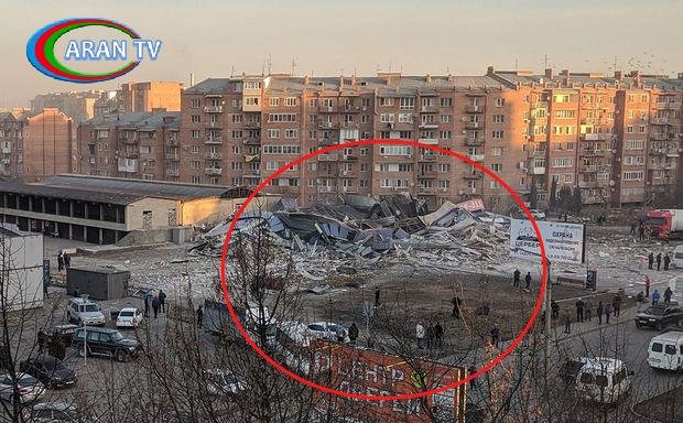 Bununla bağlı yayılan kadrlarda bir neçə supermarketin olduğu binanın yerlə-yeksan olduğu görünür.