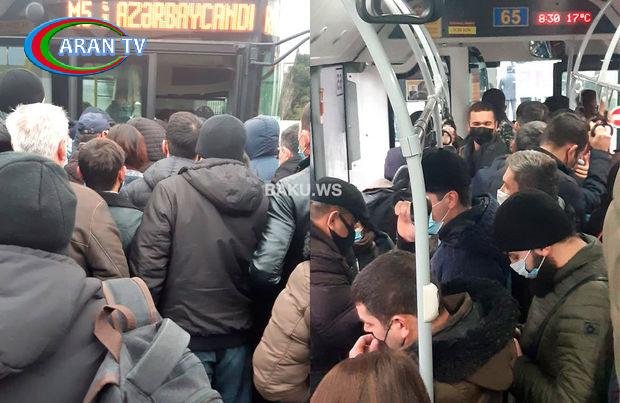 “20 Yanvar” metrosu qarşısında sərnişinlərin avtobusa minmə sınağı – VİDEO