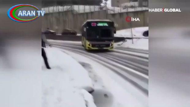 İstanbula güclü qar avtobusdan istifadə edən sərnişinlərin həyatına təhlükə yaratdı – VİDEO