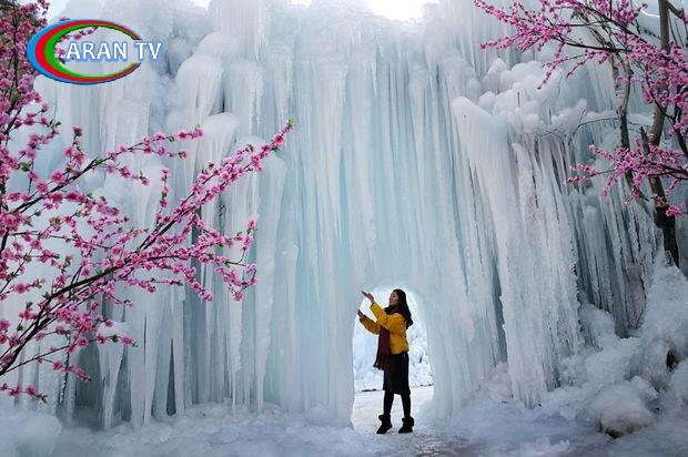 Çində donan şəlalə gözəl buz abidələri ilə heyranedici mənzərə yaradıb.
