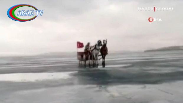 Türkiyənin Ərdəhan şəhərində yerləşən Çıldır gölünün donmasından istifadə edən Ogün Karataş faytonla öz bacarığını nümayiş etdirib.