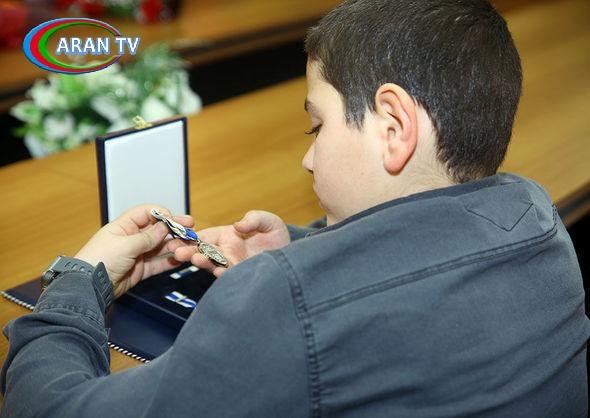 Müdafiə nazirinin müavini general-leytenant Kərim Vəliyev NATO-nun ən nüfuzlu medalını şəhid mayorun böyük oğlu Hikmətə təqdim edib.