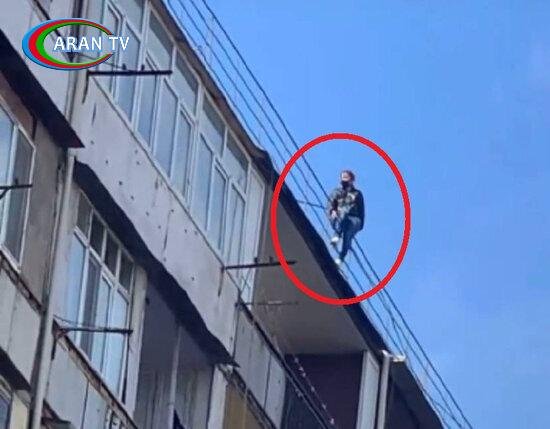 Bakıda gənc qadın özünü binadan atmaq istədi, son anda xilas olundu – ANBAAN VİDEO