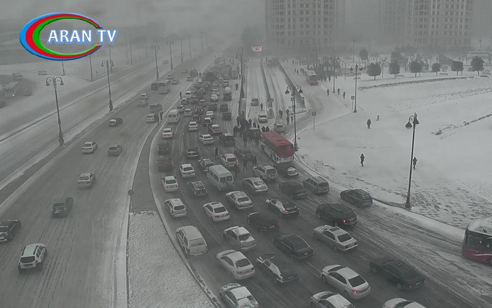 Dünən axşamdan müşahidə edilən qarlı-çovğunlu hava şəraiti paytaxt yollarında nəqliyyat vasitələrinin hərəkətini çətinləşdirib.