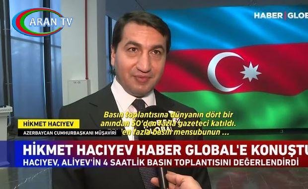 Azərbaycan Prezidentinin köməkçisi – Prezident Administrasiyasının Xarici siyasət məsələləri şöbəsinin müdiri Hikmət Hacıyev “Haber Global”a mətbuat konfransı haqqında danışıb.