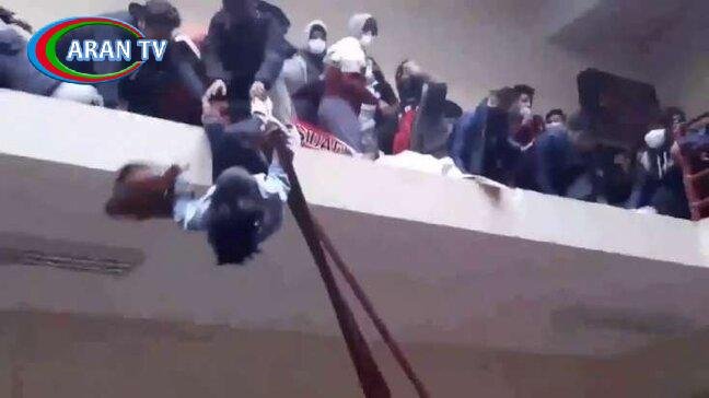 ARANTV.AZ xəbər verir ki, tələbə mərkəzində növbə zamanı sıxlıq yaşanıb. Tələbələrin bir-birilərinə müdaxiləsi nəticəsində gərginlik baş verib. Bu zaman məhəccərlər qəfil yerindən qopub. Nəticədə 11 tələbə 4-cü mərtəbədən yerə düşüb. Onlardan 7-si həyatını itirib. Digərləri xəsarət alıb./Metbuat.az