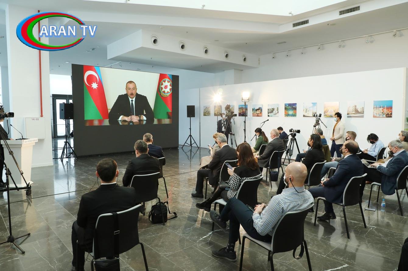 Qarabağ müharibəsinin səbəb və nəticələri haqqında söhbət açan prezidentimiz qeyd etmişdir ki, bu müharibə hər iki ölkəyə böyük ziyanlar vurmuş, xüsusilə Azərbaycanın 30 il ərzində işğal altında qalan torpaqlarında kənd və şəhərlərimiz dağıdılmış, bərbad hala salınmışdır. İndi işğaldan azad olmuş torpaqlarda bərpa və quruculuq işləri görülməkdədir. Qarabağda böyük iqtisadi layihələr həyata keçiriləcəkdir. İnşa olunan yollar bölgənin inkişafını sürətləndirəcək və regionun tranzit əhəmiyyətini artıracaqdır. Bərpa işlərinin görülməsinə bütün tərəfdaş və maraq göstərən ölkələr cəlb olunacaqdır. Dost ölkələrdən olan şirkətlər bərpa işlərinə cəlb olunacaq. Prezident qeyd etmişdir ki, irimiqyaslı layihələr böyük maliyyə vəsaiti tələb edir. Bu işlərin görülməsinə bir neçə milyard dollar xərclənəcəkdir.