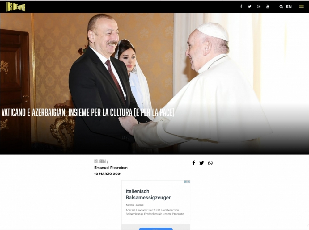 İtaliyanın “İnsideover” portalında jurnalist Emanuel Pietrobonun müəllifliyi ilə Azərbaycan haqqında silsilə məqalələr dərc olunub.