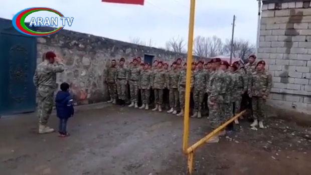 Onlar şəhidin övladı Uğurun ziyarətinə gəliblər. Şəxsi heyət Uğurun qarşısında hərbi salam verib.