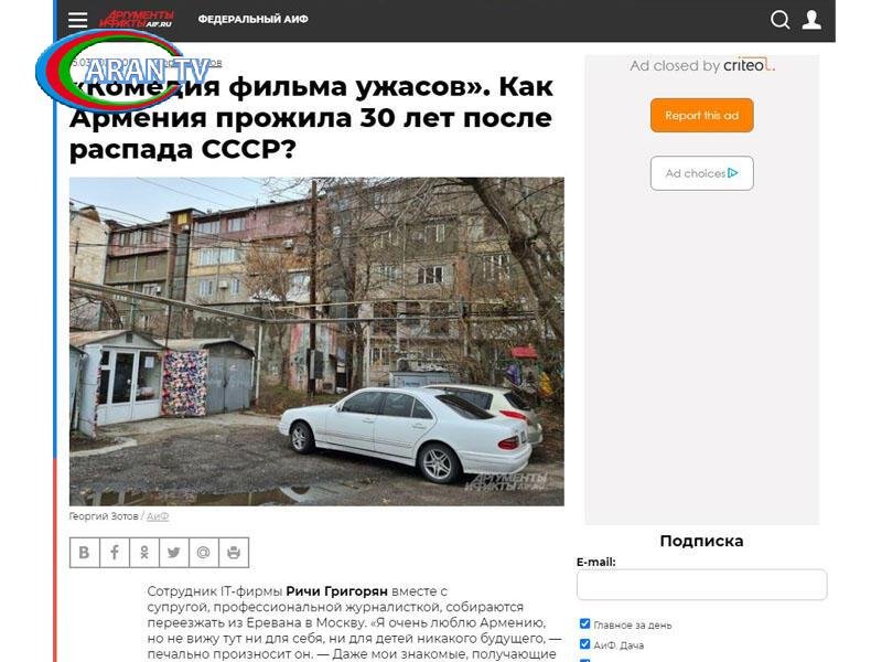 ARANTV.AZ Trend-ə istinadən bildirir ki, bu barədə Rusiyanın “Arqumentı i faktı” (AiF) qəzetində Yerevan haqqında dərc olunan növbəti reportajda deyilir.