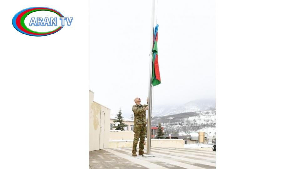 ARANTV.AZ  xəbər verir ki, səfər zamanı Prezident İlham Əliyev Hadrutda Azərbaycan bayrağını ucaldıb.