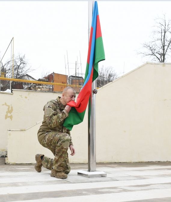 Prezident Hadrutda Azərbaycan bayrağını ucaldıb