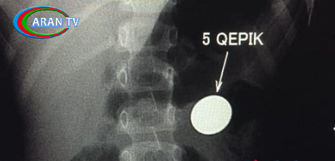 Bakıda 4 yaşlı uşaq ehtiyatsızlıqdan qəpik udub. Müayinə zamanı qəpiyin təbii yolla mədədən xaric edilməsinin mümkünsüz olduğu məlum olub.