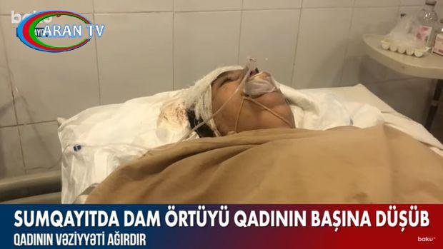 Sumqayıtda dam örtüyü qadının başına düşdü – VİDEO
