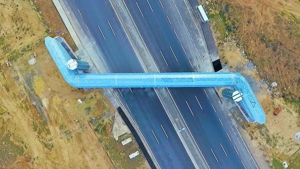Konstruksiyası metal, bəzək materialı alüminium kompozit panel və örtükdən ibarət olan yerüstü piyada keçidində fiziki məhdudiyyətli insanların rahatlığını təmin etmək üçün 2 müasir lift quraşdırılıb.