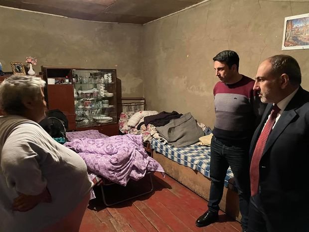 Paşinyan və onu müşayiət edən Ermənistan parlamentinin vitse-spikeri Alen Simonyan səfalət içində yaşayan bir erməni ailəsinin “qonağı” olub. Ziyarətin görüntüləri ilə birlikdə Nikol Paşinyanın bu evdə “internetə çıxış olan komputer” olması qürrələndiyi xəbəri ortaya çıxıb.