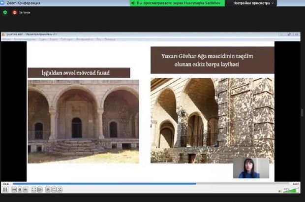 Səbinə Hacıyeva memarlıq irsinin bərpası istiqaməti üzrə məlumat verərkən qeyd edib ki, ümumilikdə, Şuşada 165 tarixi abidə var, amma tələbələr təbii ki, onların hamısı deyil, bir qismi üzərində iş aparıblar: