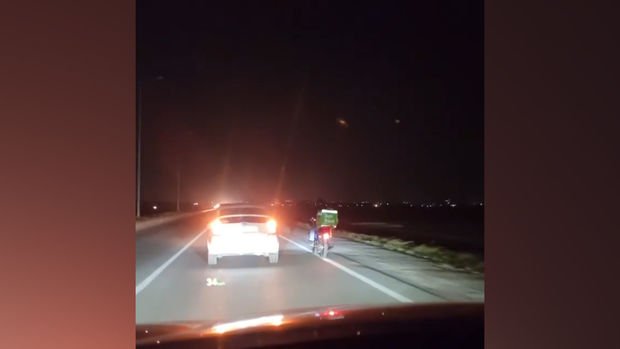 Paylaşılan videodan görünür ki, sürücü yanındakı motosikleti külək aşırtmasın deyə, maşını onunla paralel sürməyə çalışır.