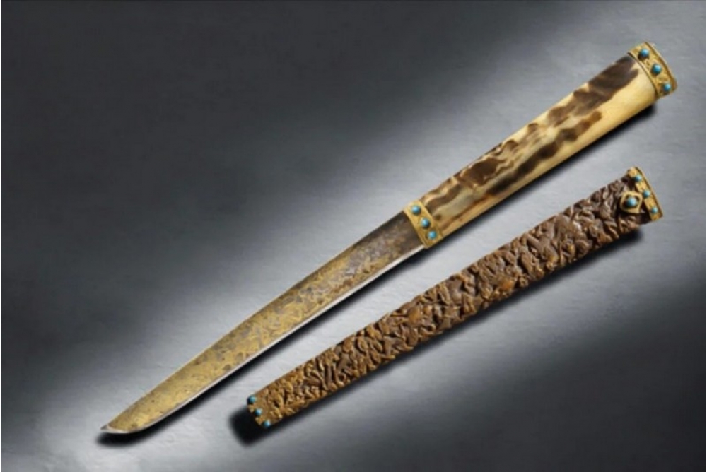 Bu bıçaq Qing sülaləsinin imperatoru Qianlunun mülkünə daxil idi. Bu qədim biçağın dəstəyi nadir bir antilopun buynuzundan hazırlanmışdır. Üzərində o zamanlar lazım olan diş çubuqlarının saxlandığı gizlin bir cib rast gəlmək olar. Həqiqi qızıldan hazırlanan bıçaq, həmçinin mərcan, firuzə və lazurit kimi daşlar ilə bəzədilib. Silahın qını isə kərgədan buynuzundan hazırlanmışdır.Bu bıçaq 2009-cu ildə ” Sotheby”auksionunda 960.000 dollara satılmışdır. Lakin hal-hazırda onun qiyməti 1.240.000 dollardır.