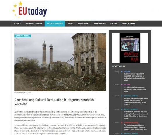 Avropanın “EU Today” media platforması “Qarabağda onilliklər ərzində maddi-mədəniyyət nümunələri məhv edilib” sərlövhəli məqalə yayıb.