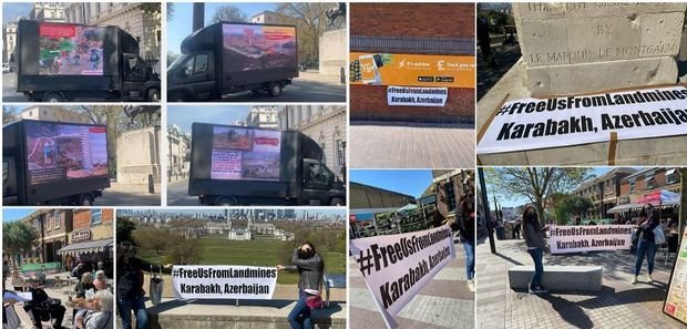 Birləşmiş Krallıqda fəaliyyət göstərən “Natavan Qrup” təşkilatının üzvləri və bu ölkədə yaşayan Azərbaycan icmasının fəalları tərəfindən London şəhərində yerli əhaliyə Ermənistanın işğaldan azad olmuş ərazilərə dair mina xəritələrini dövlətimizə təqdim etməməsi ilə bağlı məlumatlandırıcı lifıetlər paylanılıb. Paralel olaraq, şəhərin mərkəzi yerlərində, avtobus dayanacaqlarında məlumatlar yerləşdirilib, məlumatlandırıcı bannerlər asılıb.