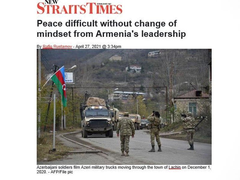 Təkcə Malayziyada deyil, Cənub-Şərqi Asiya regionunda ən tanınmış nəşrlərdən olan “New Straits Times” qəzeti “Ermənistan rəhbərliyinin təfəkkürü dəyişmədən sülh çətindir” sərlövhəli geniş məqalə dərc edib.
