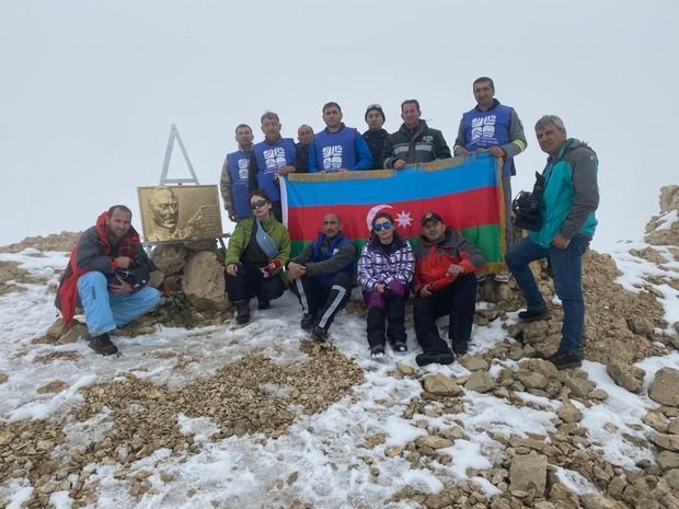 “Azərbaycan xalqının ümummilli lideri, dahi şəxsiyyət Heydər Əliyevin anadan olmasının 98-ci ildönümü ilə əlaqədar Azərbaycan dağçılarından ibarət qrup “Heydər zirvəsi”nə qalxıb”.