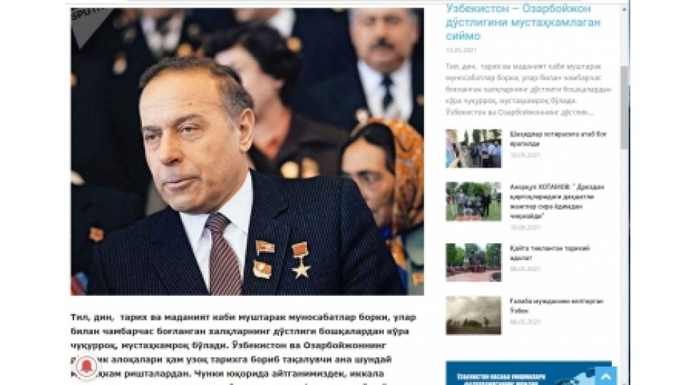 Yazıda deyilir ki, dünya şöhrətli siyasətçi Heydər Əliyev Özbəkistan-Azərbaycan münasibətlərinin dostluq və əməkdaşlıq ruhunda qurulması və inkişaf etdirilməsində mühüm rol oynayıb.