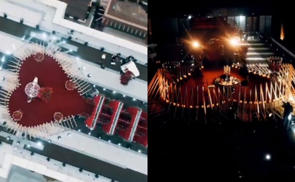 ARANTV.AZ xəbər verir ki, bunun üçün oğlan otellərdən birində maraqlı şam yeməyi təşkil edib. Ürək formasında dizayn yaradılan məkana musiqiçilər də yerləşdirilib. Dəbdəbəli evlilik təklifinin görüntüləri sosial şəbəkədə yayılıb.