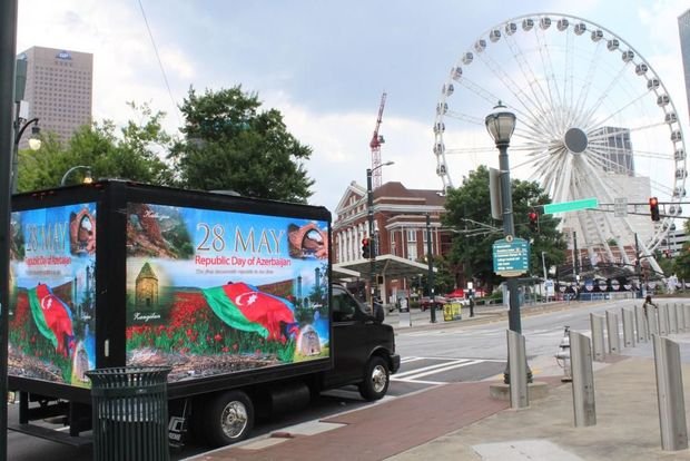 Komitədən bildirilib ki, aksiya zamanı xalqımızın tarixində önəmli yer tutan bu hadisə barədə məlumatları əks etdirən Led ekranlı yük maşınlarının hərəkəti Nyu York, Los-Anceles və Atlanta şəhərlərində təmin edilib. Led ekranlarda “28 may – Azərbaycanın Respublika Günü” və “Şərqdə ilk demokratik respublika” sözləri yazılıb, Heydər Əliyev Mərkəzinin Azərbaycan və Türkiyənin dövlət bayraqları ilə işıqlandırılması, Azərbaycanın işğaldan azad olunmuş Şuşa, Zəngilan, Cəbrayıl, Ağdam şəhərlərindəki tarixi memarlıq və dini abidələrin, Xudafərin körpüsünün, hər güşəsində üçrəngli bayrağımızın dalğalandığı məmləkətimizin gözəl təbiətinin təsvirləri əks olunub.