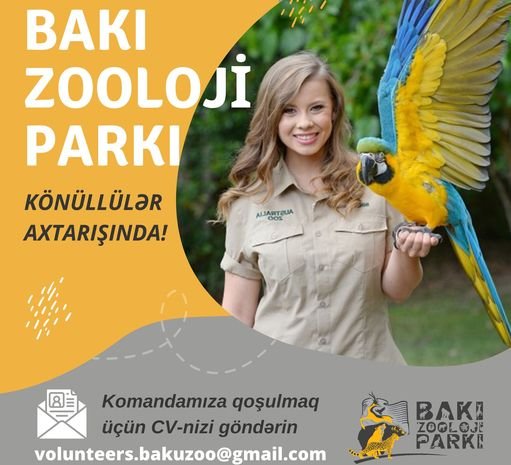 Bakı Zooloji Parkında könüllülük fəaliyyətinə qoşulmaq istəyən şəxslər öz CV-lərini 20 iyun tarixinə qədər volunteers.bakuzoo@gmail.com elektron poçt ünvanına göndərə bilər. Əlavə suallar yaranarsa, 012 497 63 16 nömrəsi ilə əlaqə saxlamaq xahiş olunur.