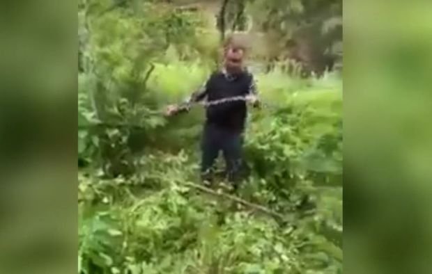 Videoda görünür ki, həmin şəxs həyətini təmizləyərkən Şuşada yaşadıqları dövrdə özünün düzəltdiyi dırmığı tapır.
