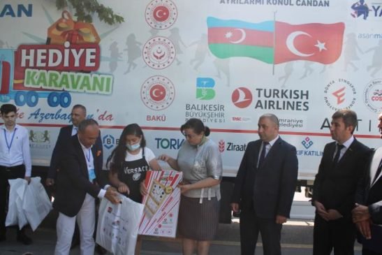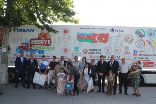 Türkiyə Uşaq Oyunları və İdman Klubları Federasiyasının təşəbbüsü ilə həyata keçirilən “Hədiyyə karvanı yollarda Azərbaycan” layihəsi çərçivəsində Ankara şəhərindən start götürən nümayəndələr Bərdə rayonunda olmuşlar. Türkiyə Uşaq Oyunları və İdman Klubları Federasiyasının vitse Prezidenti Salim İsot, Bərdə rayon İcra Hakimiyyətinin başçısının müavini Fəqət Şadlinskaya, Vətən müharibəsi iştirakçıları və şəhid ailələri ilə işin təşkili şöbəsinin müdiri Samir Səfərov, ”YAŞAT” Fondunun nümayəndəsi Tural Yedigarov, Bərdə Regional “ASAN Xidmət” Mərkəzinin direktoru Əşrəf Əliyevin iştirakı ilə Bərdə “ASAN Xidmət” binasının qarşısında şəhid və qazi ailələri ilə görüş keçirilmişdir. Görüş zamanı əsrlərə söykənən Türkiyə Azərbaycan dostluq və qardaşlığından, 44 günlük müharibədə Ali Baş Komandan cənab İlham Əliyevin rəhbərliyi altında rəşadətli Azərbaycan Ordusunun qazandığı Qələbənin əldə olunmasında Türkiyənin mənəvi dəstəyindən və bugün şəhid, qazi ailələrinə göstərilən diqqət və qayğıdan söhbət açılmışdır. Sonra şəhid və qazi ailələrinin övladlarına hədiyyələr təqdim olunmuşdur. Uşaqların söylədikləri şerlər tədbirə rəng qatmışdır. Həmçinin qardaş Türkiyədən olan qonaqlarla birgə şəhid və qazi ailələrinin evılərinə də baş çəkilmişdir.