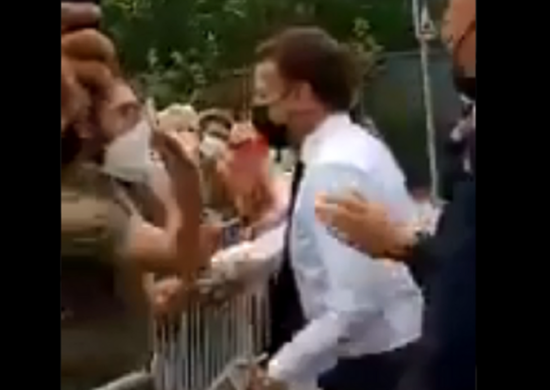 Bu zaman bir kişi E.Makronun üzünə sillə vurub. Prezidentin mühafizəçiləri dərhal hadisəyə müdaxilə ediblər.